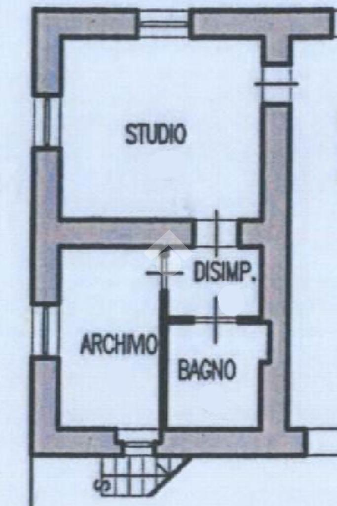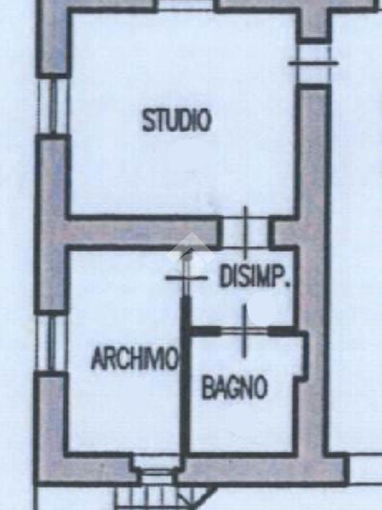 L'ufficio è composto da una stanza ad uso studio esposta a nord/ovest , un bagno cieco, e una seconda stanza ad uso archivio esposta a sud/ovest, collegati da un piccolo disbrigo.