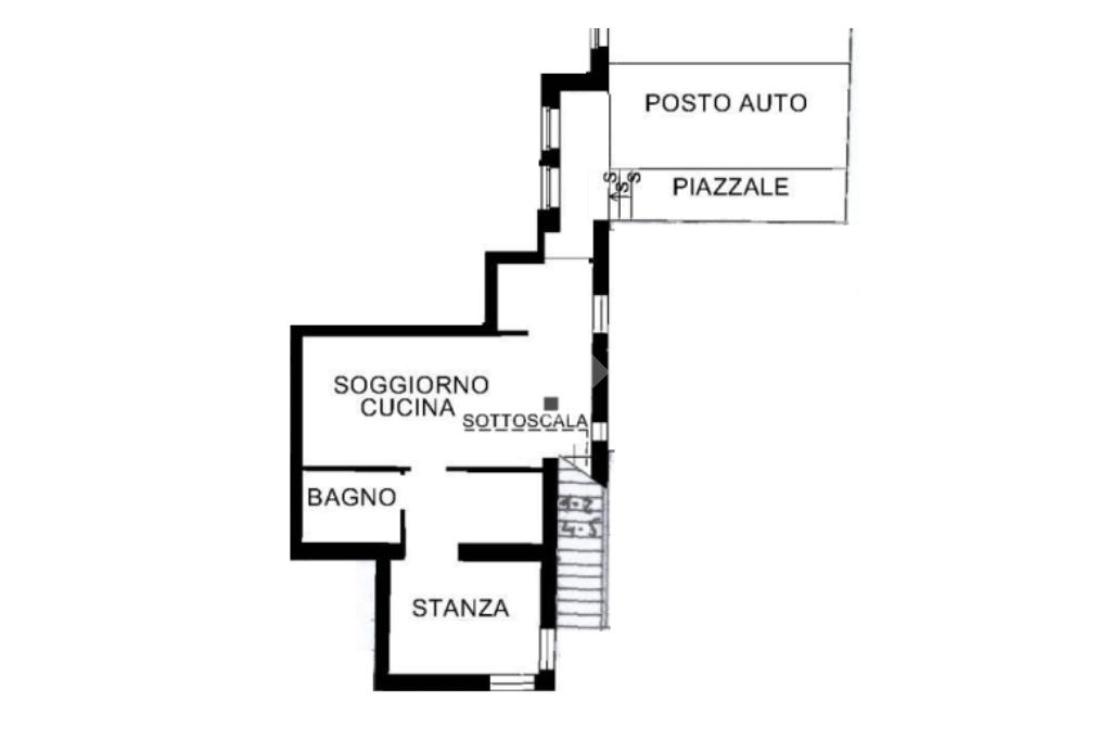 Entrando, un comodo disimpegno accompagna alla luminosa zona giorno esposta a est, dove la cucina open space crea un ambiente moderno e accogliente. È inoltre presente un pratico sottoscala adibito a ripostiglio, perfetto per ottimizzare gli spazi.