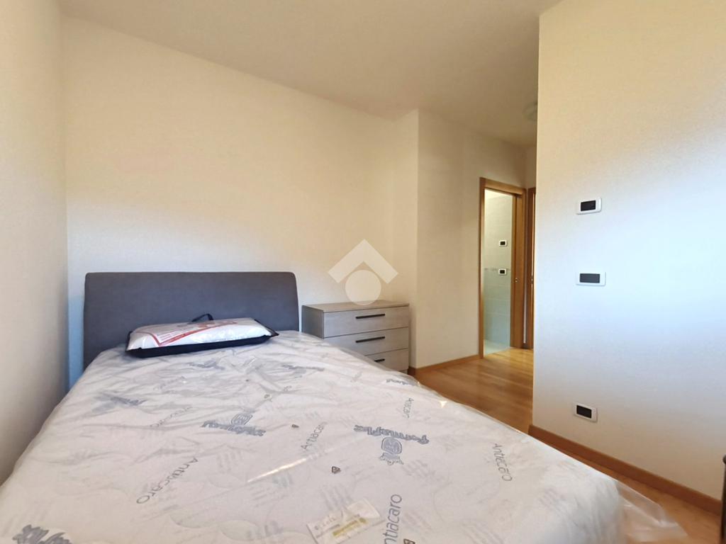La spaziosa camera matrimoniale offre un ambiente intimo e ben organizzato, con uno spazio dedicato ideale come cabina armadio. Completa la zona notte un bagno cieco con doccia.