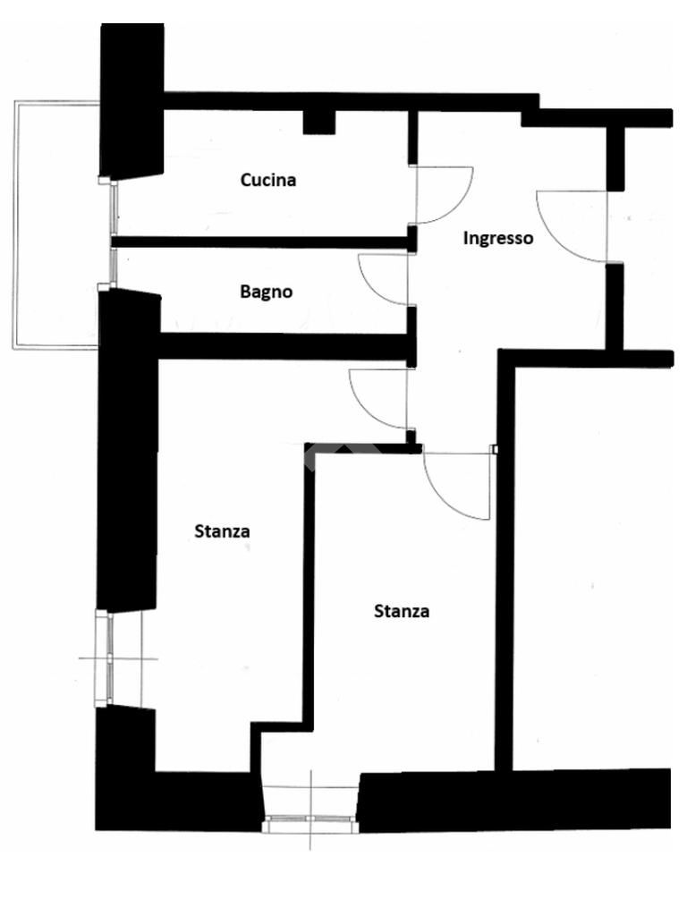 La zona giorno è composta da un piccolo cucinino con accesso al balcone sul lato est dove è presente la caldaia autonoma. Dall'ingresso si accede anche al bagno con doccia. La zona notte è composta da due piccole stanze.